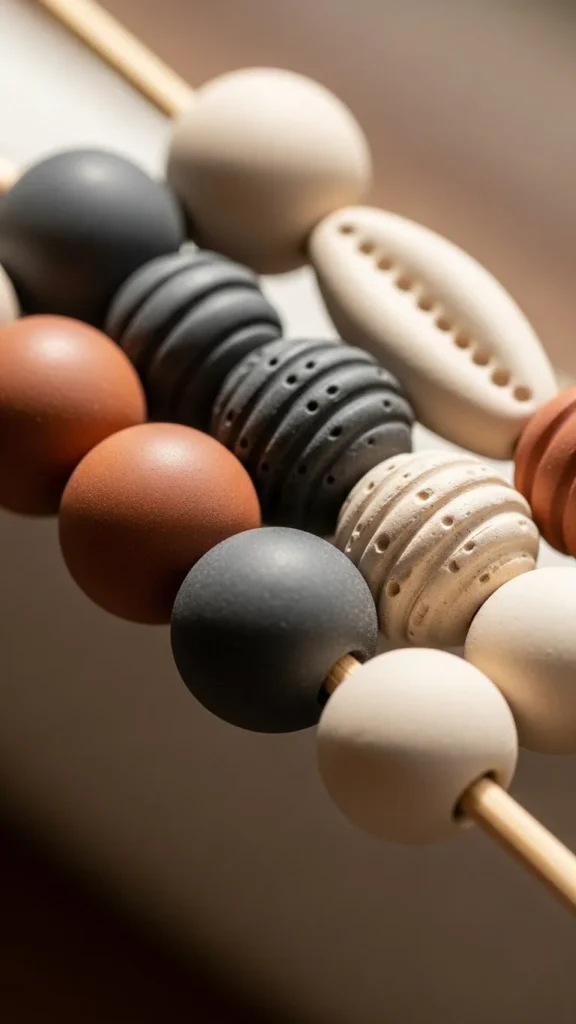 Clay beads let you craft garlands or hanging decor. Roll small balls, poke holes with a skewer, and press patterns using household objects. Once dry, paint them or leave them neutral. String beads onto twine and hang them on hooks, shelves, or mantels. They’re lightweight and easy to batch-make. Kids enjoy helping with this project too.