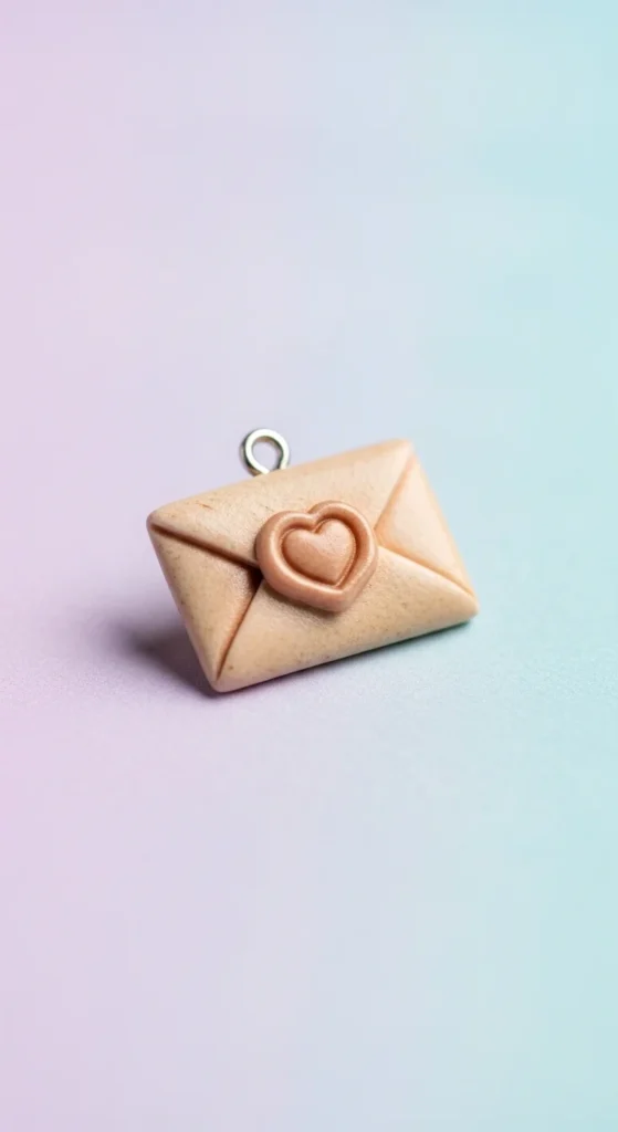 This tiny charm looks like a miniature envelope. Shape a small rectangle and gently press fold lines into the surface. Add a tiny heart detail in the center as a seal. Smooth the edges with your fingers. Make a small hole before drying so it can hang from jewelry or keys.