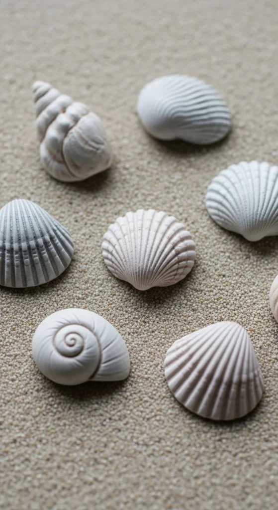 Seashell shapes are perfect for beach-inspired decor. Press real shells into clay to transfer their texture. Cut around the edges carefully to keep the shape neat. Smooth rough spots with a damp fingertip. Paint in sandy, pearly, or soft pastel tones once dry.