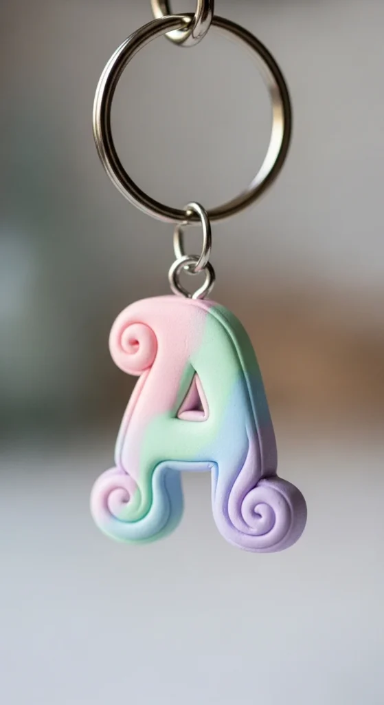 Personalized letter charms make great small gifts. Roll clay flat and cut out an initial using a knife or stencil. Smooth the edges so the shape looks clean. Add a hole near the top before it dries. Paint in bright or pastel colors and attach to a keyring.