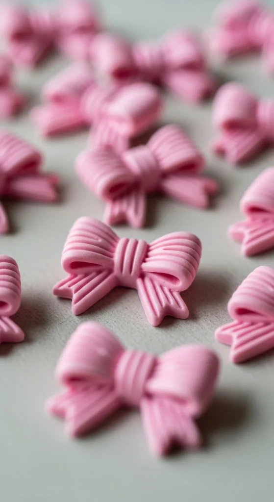 Clay bows add a sweet decorative detail to many items. Roll two small loops and pinch them in the middle. Wrap a thin strip of clay around the center to finish the bow. Smooth the joins gently with your fingers. Paint in soft pink, white, or pastel shades.
