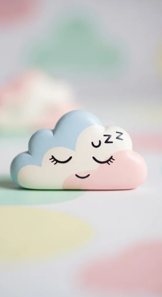 A soft cloud shape adds a cozy touch to desks or shelves. Roll clay flat and cut a rounded cloud outline with gentle curves. Smooth the edges using your fingertip and a little water. Let it dry completely before adding any details. Draw or paint a simple sleepy face for extra charm.