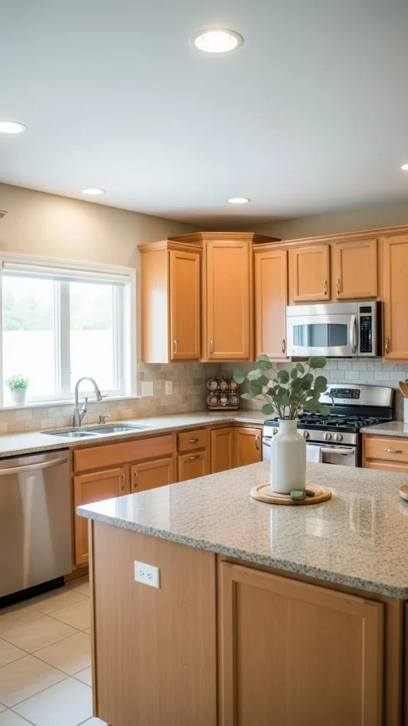 Clean grout and edges help neutral kitchens feel calm. This small maintenance step changes the look more than adding decor.