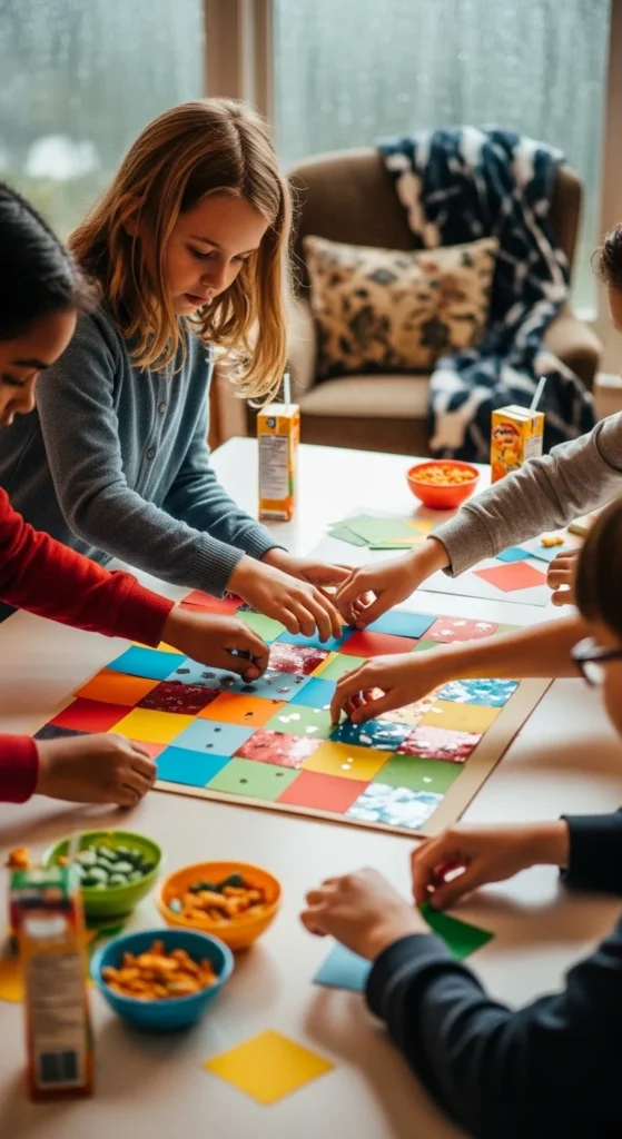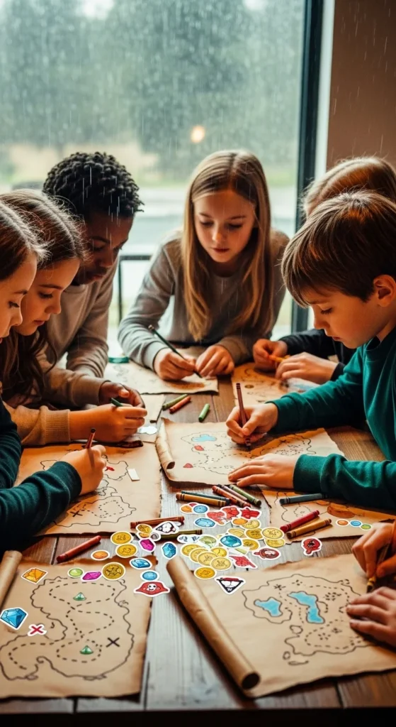 Treasure map collages are a wonderful final craft for a rainy day because they mix art with imagination and indoor adventure. Start with a sheet of paper or light cardboard and have kids draw rooms, paths, rivers, mountains, furniture landmarks, or hidden treasure spots. Then add collage pieces from torn paper, stickers, foil scraps, or stamped shapes to decorate the map. Once finished, the map can lead to a real indoor treasure hunt with small clues hidden around the house. This makes the project much more than a drawing activity. It becomes a full game. A budget-friendly tip is to use brown paper bags or tea-stained paper if you want an old treasure map look without buying anything special. Kids can crumple the page gently and smooth it out again for extra texture. Younger children may enjoy simple “X marks the spot” maps, while older kids can build detailed routes and clue systems. This craft is especially useful when a rainy day feels long because it fills time in stages: making, hiding, and searching. It is creative, interactive, and a very strong screen-free finish to an indoor afternoon.