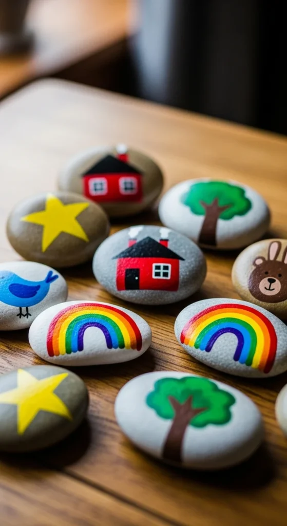 Story stones are a brilliant craft for rainy afternoons because they become a game once the painting is done. Start with smooth stones and paint easy symbols on them, such as a tree, house, star, cloud, animal, cake, rainbow, or heart. Keep the drawings simple so children can finish several in one sitting. When the stones are dry, place them in a bowl or bag and let kids pull out a few at a time to create stories using the pictures. This gives the project much more replay value than a one-time craft. It is also budget-friendly because the stones can come from the yard or an old decorative bowl at home. If paint feels too messy, use paint pens or permanent markers on lighter-colored stones. Older children can build themed sets like fairy tale stones, weather stones, or adventure stones. Younger children can use them for naming objects or creating silly short stories. This craft is a wonderful mix of art, imagination, and quiet play, which makes it especially useful on long indoor days when energy starts bouncing around the house.