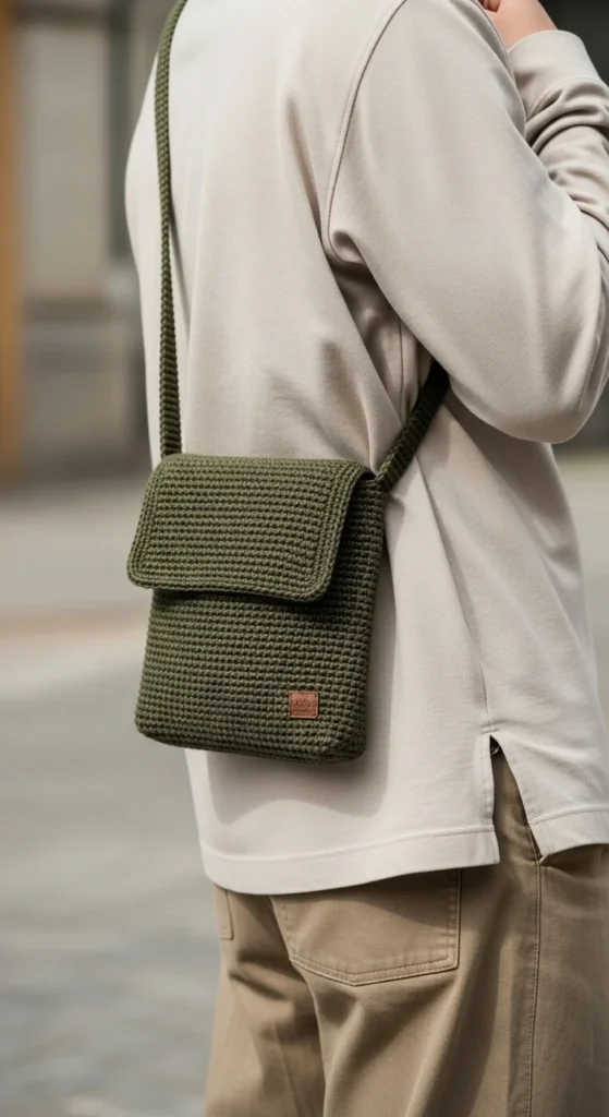 A unisex minimal sling bag is a strong option for anyone who wants a crochet bag with a simpler, more understated look. This style usually has clean lines, a compact shape, and colors that feel grounded rather than decorative. It works well for men, women, teens, and anyone who likes practical bags without floral details or softer styling. Olive, charcoal, navy, black, and warm brown are all smart choices. Keep the body neat and functional with room for phone, wallet, keys, and a few extras. A strong crossbody strap helps the bag sit comfortably and makes it useful for commuting, shopping, walking, or travel. Cotton or a firm smooth yarn is ideal here because it supports the shape well. A zipper or flap can make the bag feel more secure. This is a really useful project because it fills a gap many crochet patterns miss. It is simple, wearable, and built for real everyday use.