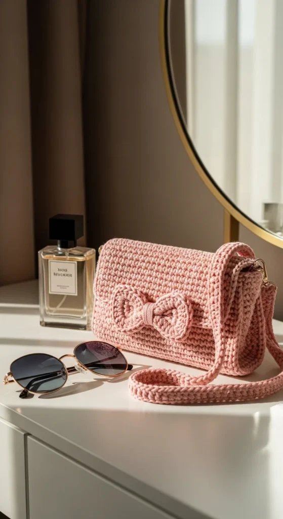 A bow detail baguette purse is a sweet everyday option for makers who want something stylish but still easy to use. The baguette shape stays compact and wearable, while the bow adds a soft decorative touch that does not take over the whole design. This kind of bag is perfect for brunch, short outings, shopping, or any day when you want a smaller purse that still feels special. Blush, cream, camel, black, or dusty blue all work beautifully. T-shirt yarn can give the bag a fuller, trend-forward shape, while cotton offers a cleaner and lighter finish. Keep the inside simple with room for a phone, cards, keys, and one or two extra items. A zipper or magnetic snap can help the bag feel more secure. The bow can be small and neat for a calmer look. It feels playful, polished, and easy to wear without losing the practical side that makes everyday bags worth making.