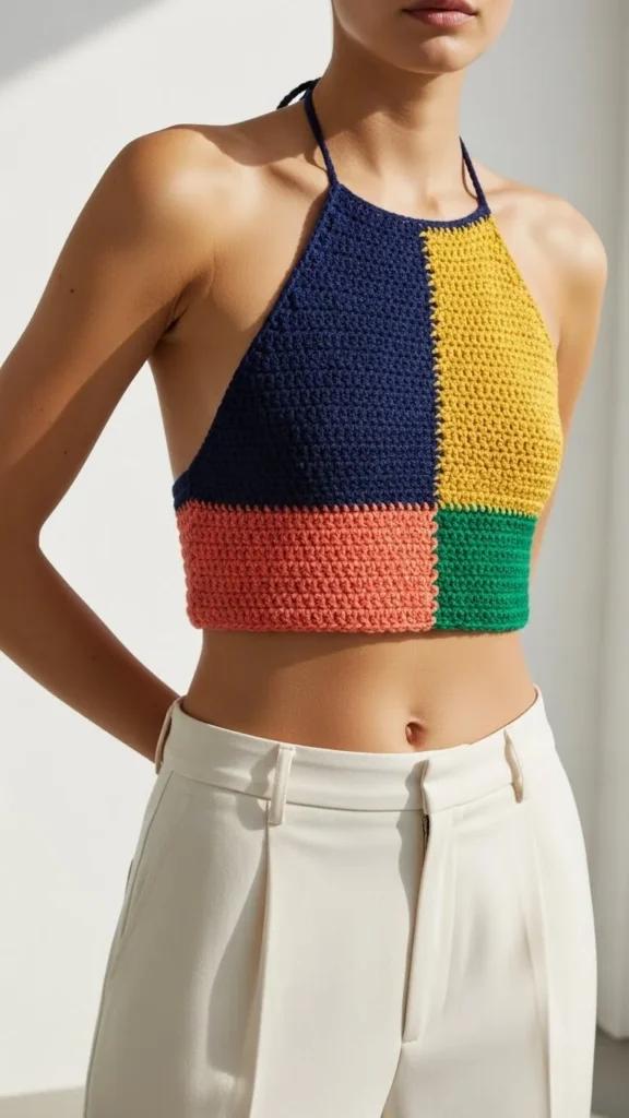 Granny squares can look chic when the colors are thoughtfully chosen. Pick three or four tones that complement each other—think muted palettes rather than vibrant mixes. Join the squares to create a fitted tank with minimal shaping. Add a ribbed border to refine the edges. This top feels youthful and stylish, especially when paired with high-waisted bottoms. It’s also a great project for using leftover yarn.