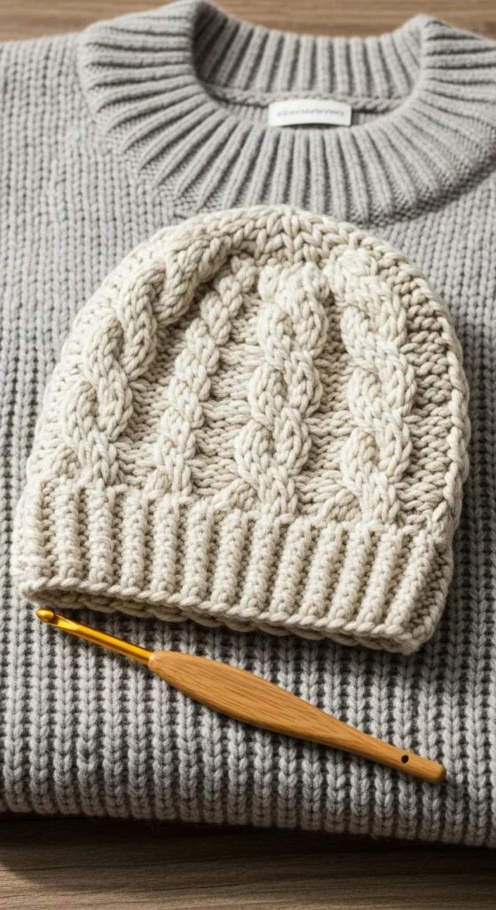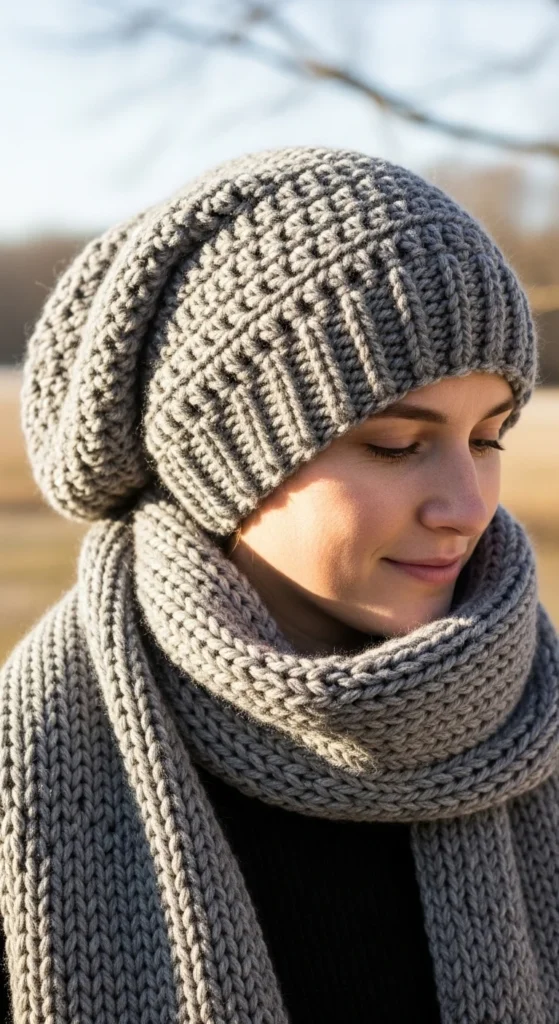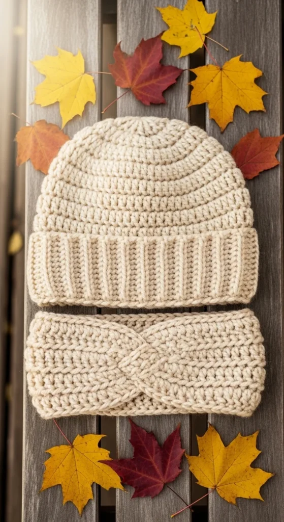 A matching hat and headband set is a smart final idea because it lets you make something flexible for different weather and different personal styles. The hat can be worn on colder days, while the matching headband works when only light ear coverage is needed. This also makes a wonderful gift set because it feels more complete than a single hat. Use the same yarn, same stitch texture, or same color palette so the two pieces clearly belong together. This is a great stash-friendly project too, especially if you have enough yarn for one hat and a smaller leftover portion. Ribbed textures, soft neutrals, and chunky yarn all work especially well for a coordinated set. The result feels thoughtful, practical, and very cozy. It gives more styling options while still keeping the handmade charm that makes crochet accessories so appealing in the first place.