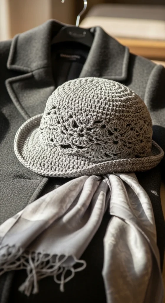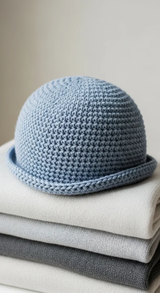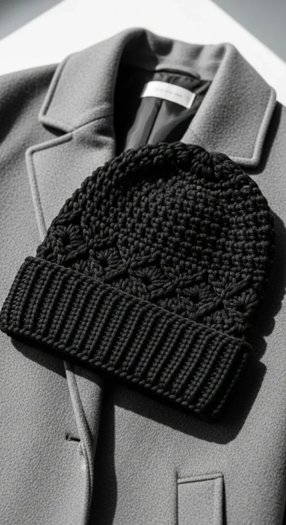 A monochrome modern hat is a great choice for people who prefer clean styling over decorative details. The idea here is simple: one strong color, one neat shape, and a stitch pattern that looks polished without drawing too much attention. Black, white, charcoal, beige, or deep navy all work beautifully. This kind of hat feels especially good for city wardrobes, minimal outfits, and anyone who likes their handmade pieces to blend into a more refined everyday style. Because the look is so clean, fit becomes very important. A well-shaped crown and tidy brim make all the difference. This is also a smart option for budget-friendly crochet because you only need one yarn color and very little extra finishing. A monochrome hat can still look cozy, especially when made with textured stitches or a softly folded brim. It is one of the easiest ways to make crochet feel modern and understated at the same time.