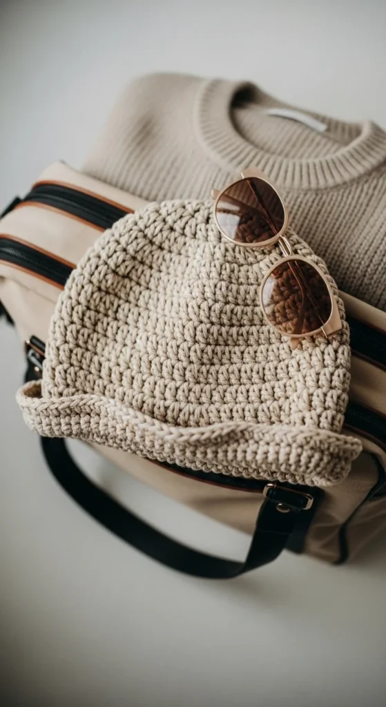 A cozy crusher hat is useful for people who want something soft, casual, and easy to pack. This style usually has a relaxed brim and a shape that can fold down into a bag without losing too much character. That makes it especially appealing for travel, errands, weekend wear, and year-round use depending on the yarn. It often looks best in cotton, raffia-like fibers, or medium-weight yarn with enough structure to keep a casual brim shape. Neutral colors make this hat feel more wearable and practical. If you are trying to stay on budget, this is a good project because the design does not depend on extra embellishments. Its charm comes from the easy shape and relaxed feel. A crusher hat is not as structured as a sunhat and not as fitted as a beanie, which is exactly why some people love it. It feels effortless and a little artsy while still staying functional.