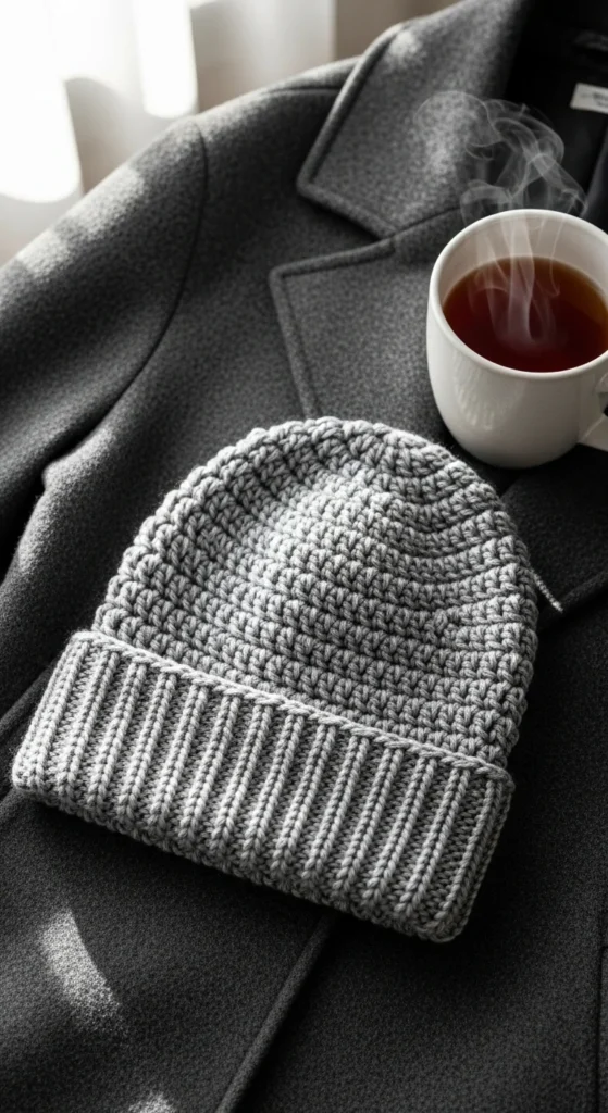 A faux cable crochet hat is a wonderful idea for anyone who loves rich texture. Cable-inspired stitch patterns give the hat a more detailed, knit-look finish that feels classic and cozy. These hats often look best in solid yarn colors because the stitch pattern deserves to stand out clearly. Cream, taupe, gray, and deep navy are especially strong choices. While a faux cable hat may take a little more focus than a plain beanie, the final look often feels worth the extra effort. It is great for winter outfits, gift giving, and anyone who wants a crochet hat that looks a bit more elevated. Keep the shape simple so the texture remains the main feature. A folded brim can work well, but even a plain ribbed base looks beautiful. If you are watching costs, do not worry about luxury yarn. A smooth, medium-weight affordable yarn can still show the texture nicely. This hat idea feels timeless, warm, and polished in a very satisfying way.