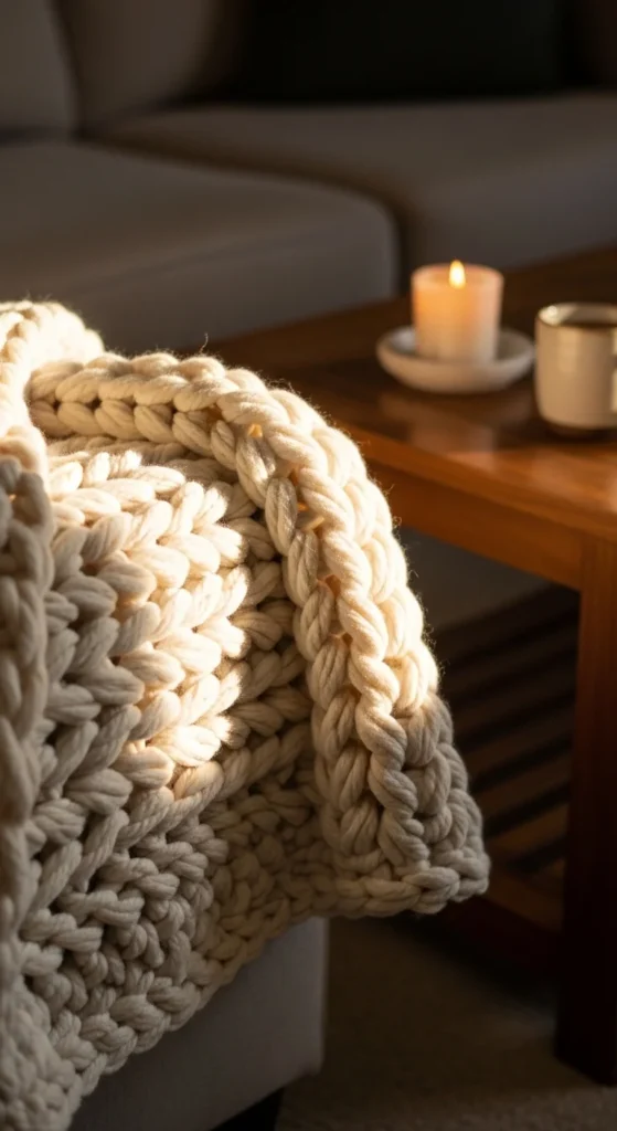 1) Chunky Crochet Throw for the Sofa
