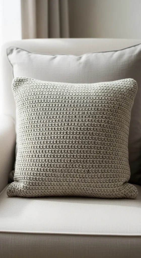 Crochet pillow covers are perfect when you want a new look without buying new pillows, because you can reuse the same insert and swap covers whenever you want. Choose a tight stitch pattern so the cover holds shape and looks tidy, and keep the color neutral—cream, beige, warm gray, or off-white—so it works in any room. If you want a little contrast, make one pillow in a muted accent like sage or dusty blue, then pair it with a neutral crochet pillow so it doesn’t feel loud. To keep it affordable, thrift pillow inserts or reuse the ones you already own, and use an envelope-style back so you don’t have to buy a zipper. Styling tip: place one textured crochet pillow next to one smooth fabric pillow, because the difference in texture makes the crochet stand out without adding clutter. One good cover can change the whole sofa.