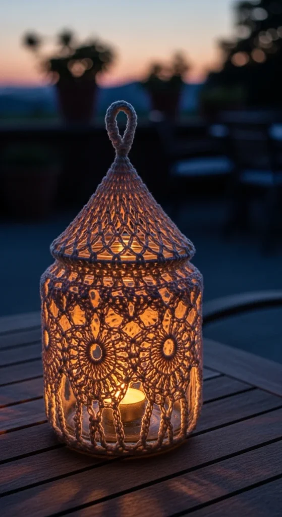 21) Crochet Jar Lantern Cover for Cozy Corners