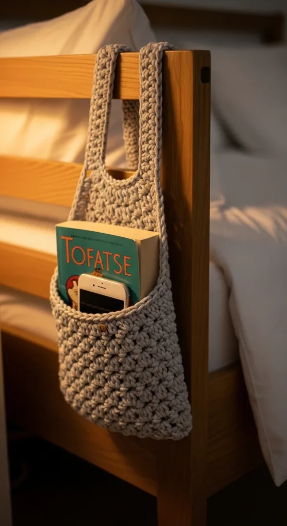 24) Crochet Bedside Caddy for Small Bedrooms