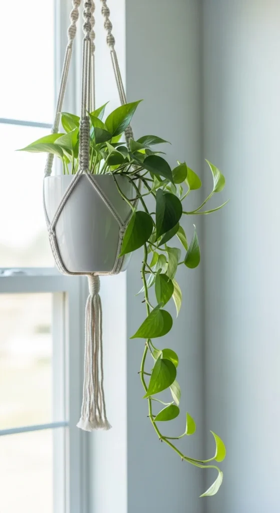 4) Minimal Crochet Plant Hanger by a Window