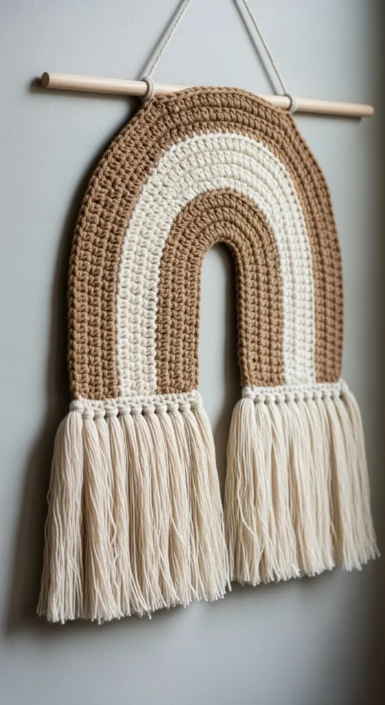 Crochet wall hangings are great when a wall feels empty but you don’t want framed art, because texture can fill space without making a room feel busy. Keep the shape simple—an arch, rectangle, or circle—and use a tight stitch for the main panel so it looks clean, then add a short fringe for softness. Choose two colors max so it feels calm, like cream and tan for a neutral home, or rust and cream for a warmer vibe. For a budget-friendly setup, use a wooden dowel, a branch, or even a thrifted curtain rod, and make a smaller hanging that still looks like a statement piece when placed above a desk, beside a mirror, or in a hallway. If you like a gallery feel, hang two small pieces vertically instead of making one large piece, because it saves yarn and still looks styled. Wall texture is decor without extra clutter.