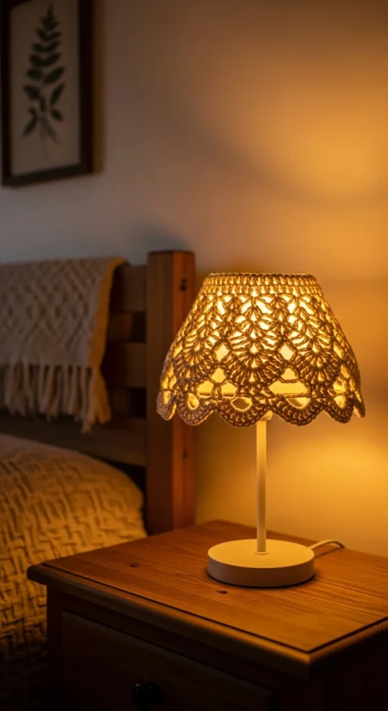 9) Crochet Lampshade Cover for Warm Lighting