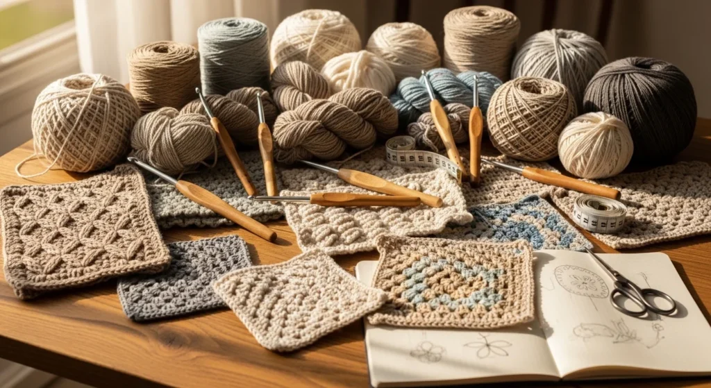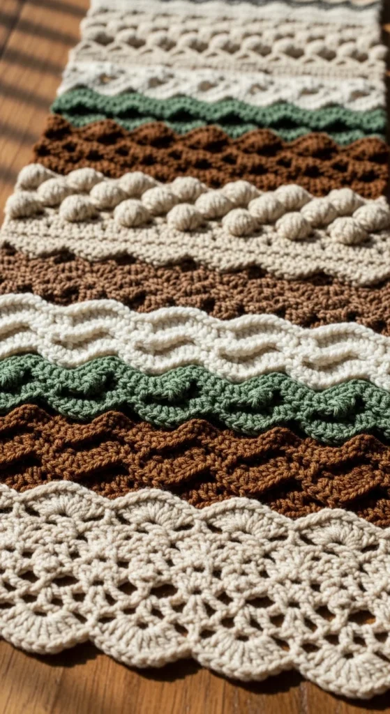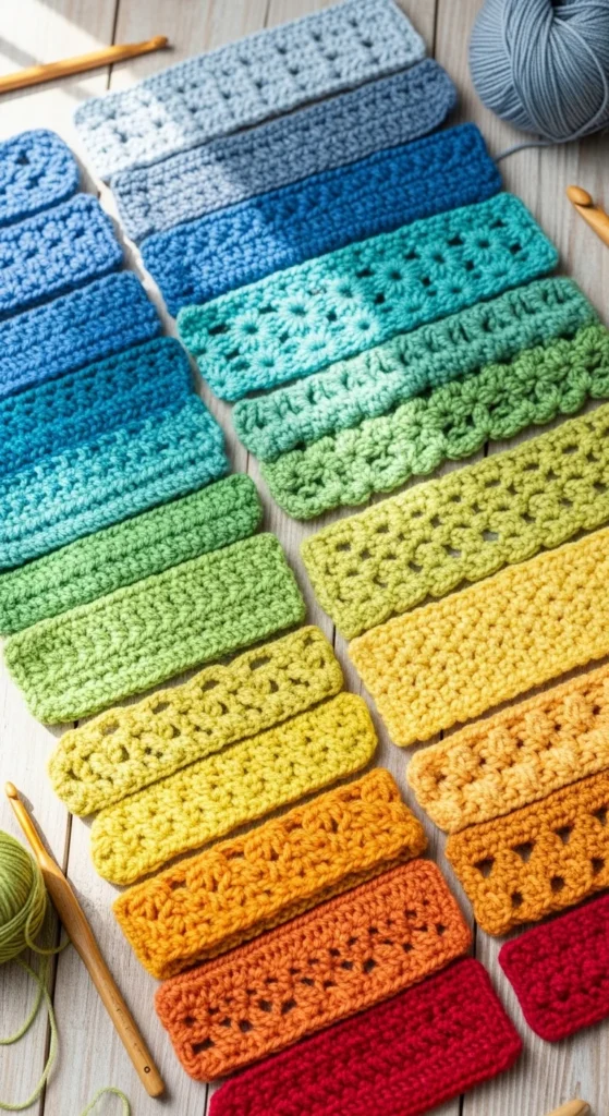 Crochet a long strip that includes several textured stitches. Switch stitches every few rows. This teaches you how different textures behave. You can turn the strip into a scarf or simply store it as a reference piece for future projects. It’s a great way to test new stitches without pressure.