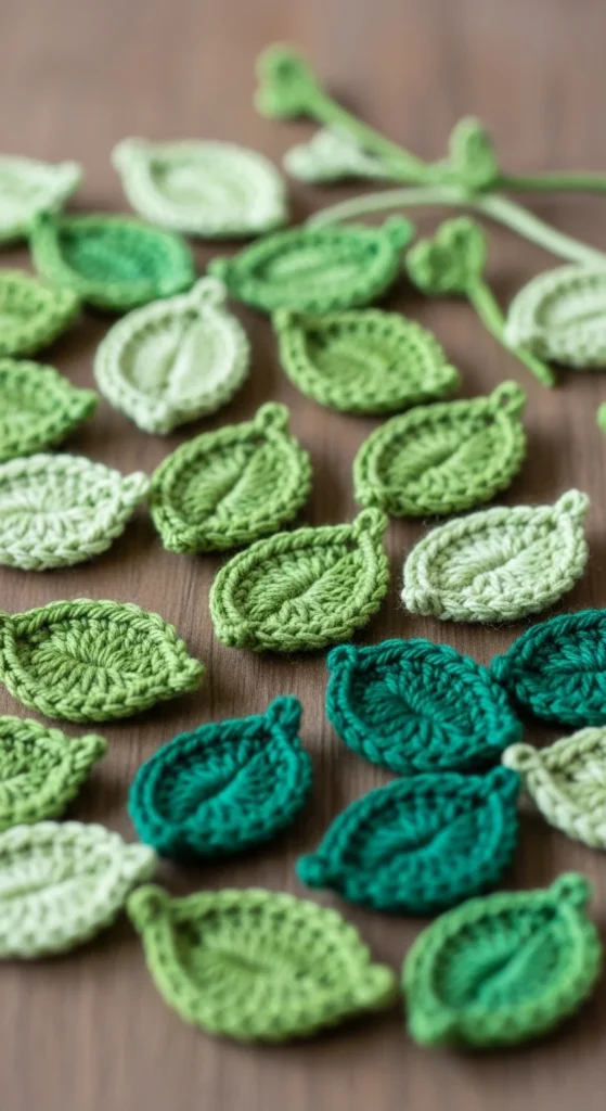 Leaf motifs are quick and gentle. They can be added to garments, blankets, or hair accessories. Practicing them helps with shaping skills.