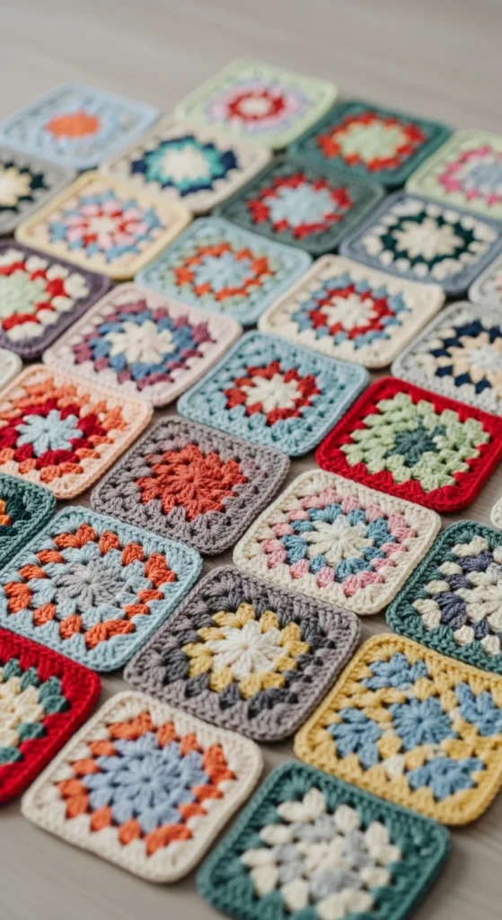 Make a series of tiny granny squares. Try different color centers, borders, or patterns. Display them on a board or keep them in a pouch. These little squares can turn into blankets, bags, or tops later. They also help you practice clean tension.