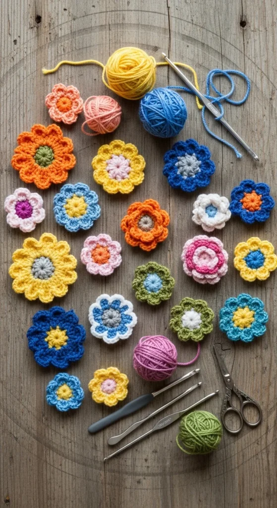 Use leftover yarn to create simple flowers. These help you practice stitch combinations and add charm to blankets, hats, or gift wrapping.
