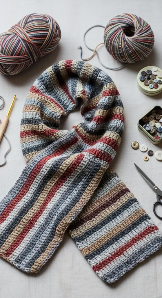 Use leftover yarn to create a long, colorful scarf. Switch colors every few rows. This transforms scraps into something wearable. It’s simple, relaxing, and encourages creativity without rules.