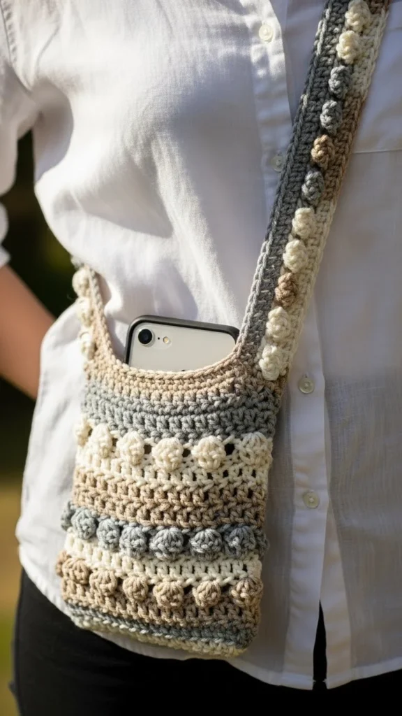 Phone slings carry essentials without bulk. Dense stitches add durability. Rectangular shapes keep construction simple.
