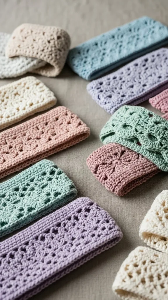 This project uses very little yarn. Soft colors feel wearable. These accessories are easy to bundle in sets.
