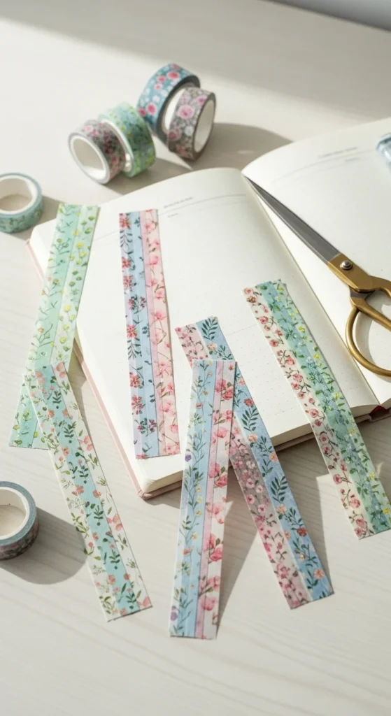 Washi tape bookmarks work well for planners, cookbooks, school books, and novels. They are thin, light, and easy to store. This idea is also very budget-friendly because even one roll of tape can decorate several bookmarks. Try making themed sets in soft pastels, warm autumn shades, or simple black-and-white prints. It is a low-effort way to turn plain paper into something cheerful and useful.