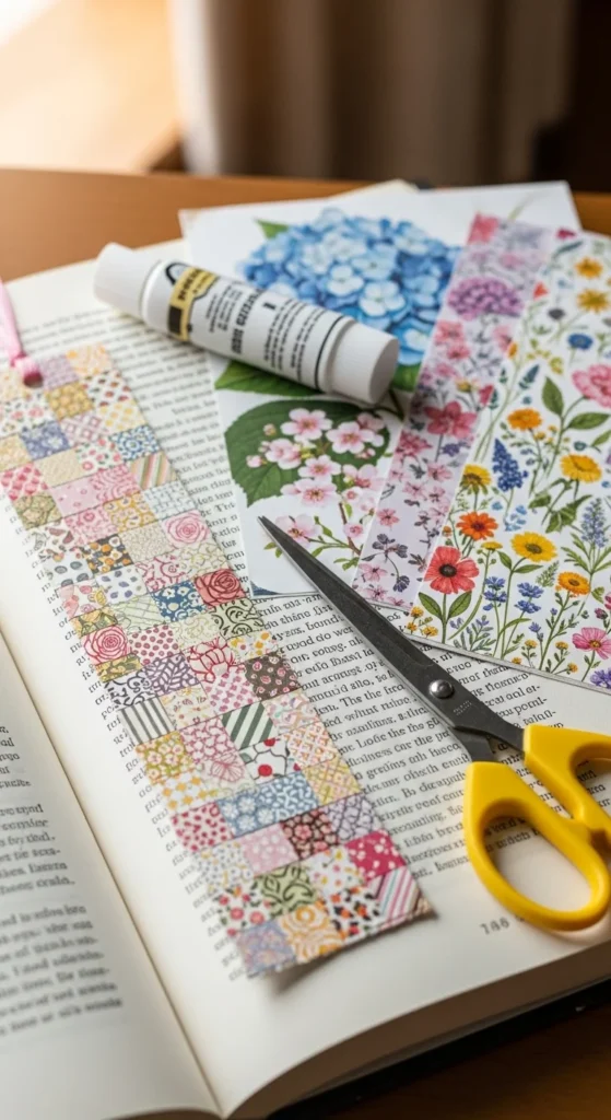 This craft is low-cost, easy to repeat, and very satisfying because even tiny paper leftovers can become something useful. It works nicely for journals, planners, and novels, and it makes a thoughtful handmade extra when added to a gift. Since no sewing is needed, it gives you the feel of patchwork without the time or tools. It is a lovely option for readers who like soft homey details in their crafts.