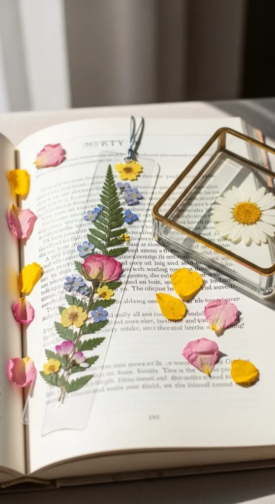 This project is low-cost and works well with flowers from your garden, a walk outside, or an old bouquet. It feels special but is still easy enough for a beginner. You can even make a set in different colors for each season. The final bookmark has a soft, delicate style that turns a simple reading break into something a little more charming.