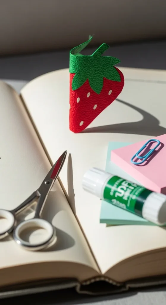 This project is great because the basic corner bookmark shape is easy to fold or glue. Once the base is done, you can turn it into almost any fruit, but the strawberry version has a sweet handmade look that is hard to resist. If you do not have cardstock, cereal box cardboard covered in colored paper works well too.