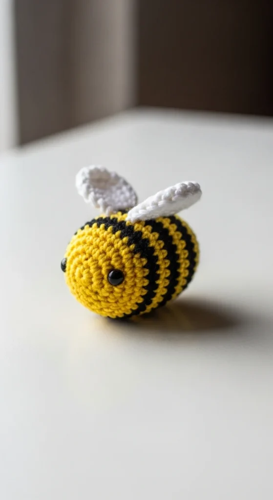 A mini bee is a cute gift topper, desk buddy, or nursery decor piece. Keep the body small and round, then add simple wings and a tiny stitched smile. Use safety eyes only if you’re sure it won’t be given to very small kids; otherwise stitch the eyes. Make a few in different sizes and colors for a fun set. For gifting, attach one to a ribbon on a present or include it as a little bonus with a bigger crochet gift. For decor, place a bee on a shelf next to a plant pot for a playful touch. Budget tip: amigurumi is great for scrap yarn, and stuffing can be a small budget bag used for many projects. If you want it to look clean, keep the stitch tight so the stuffing doesn’t show. Tiny, cute, and perfect for “just because.”