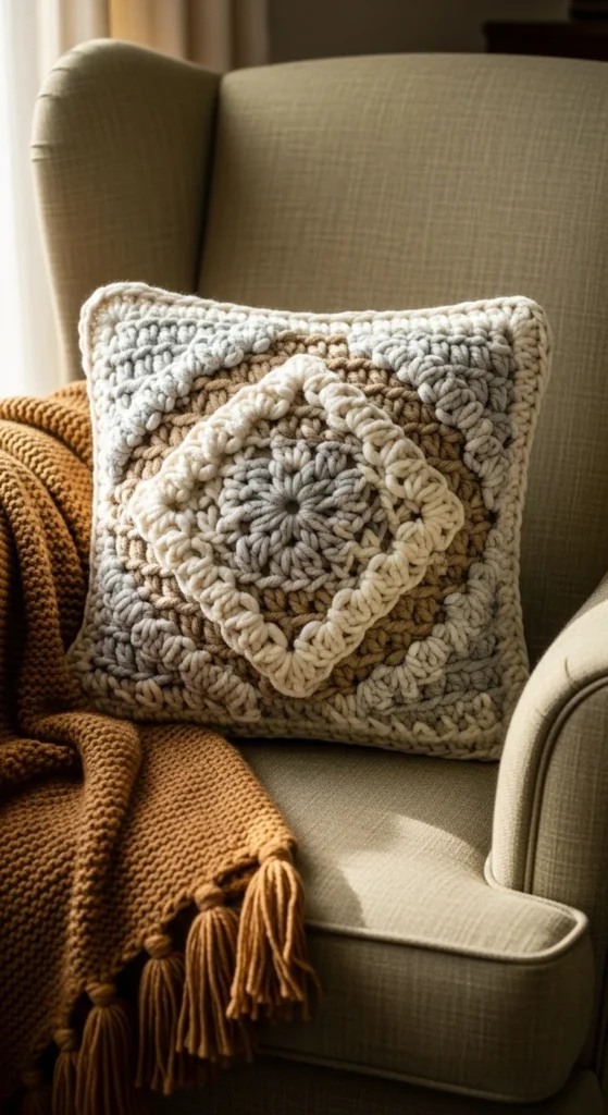 A mini crochet pillow cover is a cute decor gift that feels “home.” Keep it small—think lumbar or small square—so it’s manageable and doesn’t eat up yarn. Use a simple textured stitch that looks rich without being complicated. If you want a modern look, use one solid neutral and focus on stitch texture. For gifts, make it removable with buttons or an envelope back so it’s easy to wash. For decor, a small pillow on a chair or bench changes the whole vibe of a corner. Budget tip: use budget yarn in a thick weight so it works up faster and looks cozy. A bigger-looking gift that can still be done on a budget.