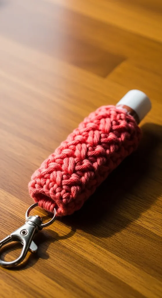 Lip balm always gets lost, so a holder is genuinely helpful. Crochet a small sleeve that fits the balm tube and attach it to a key ring or bag clip. Make it snug so it doesn’t slip out. This is a great gift for teens, coworkers, and friends who carry small bags. For gifting, include a new lip balm inside so it’s ready to use. For decor, hang one near the entryway on a hook for quick grab-and-go. Budget tip: this is a scrap project and takes very little time. If you want it to look cute, add a tiny flower or heart on the front. Small gift that gets used daily.