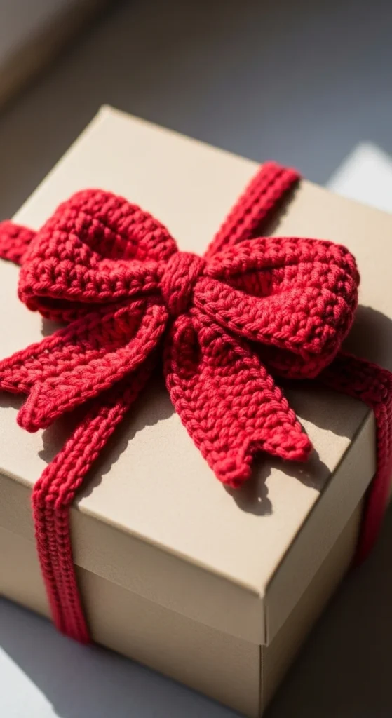 A reusable crochet bow makes gifts look special without buying fancy ribbon. Crochet a bow shape, then add ties or a clip so it can be used again. Make a few in different colors so you always have one ready. For gifting, this is a cute extra that the person can keep and use later. For decor, store bows in a small jar or basket so they look cute even when not in use. Budget tip: perfect for scrap yarn and quick to make. If you want it to look neat, use yarn that holds shape and avoid overly fuzzy yarn. Small detail that makes any gift look thoughtful.