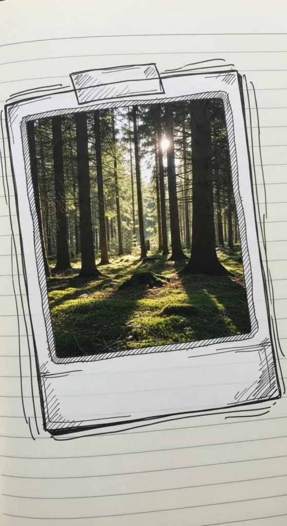 Drawing little polaroid frames gives your memories a cute spotlight. Sketch simple rectangles with a thicker bottom border. Tape a tiny photo or draw a small scene inside the frame. Underneath, write a short caption about the moment. This layout feels nostalgic and personal. Even printed mini photos work great. You can decorate the frame with stars or hearts. It’s a sweet way to highlight special days without filling the whole page.
