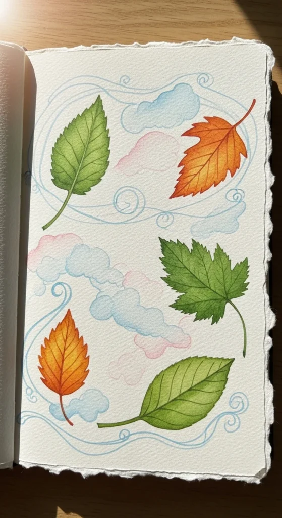 Nature themes add calm energy to your journal. Draw small leaves, vines, clouds, or sun shapes around the text. Soft greens and blues work well together. Even simple line drawings can make the page feel peaceful. Nature pages pair nicely with reflective writing. Adding a tiny vine border along the bottom gives a gentle finishing touch. These pages often feel soothing to look at later.