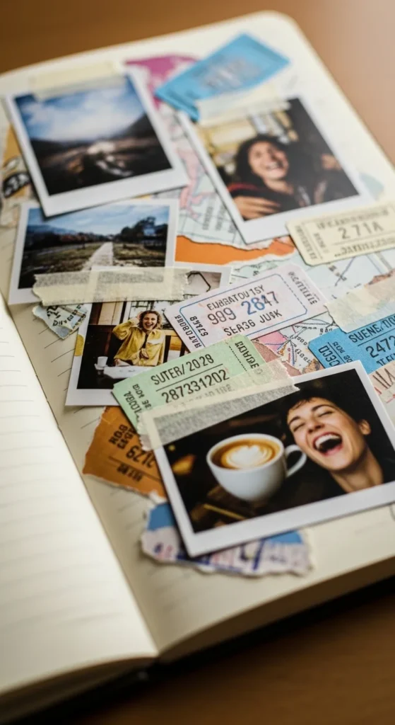 Turn your journal into a tiny scrapbook by adding real-life pieces. Tape in photos, receipts, or small paper scraps. Write short captions beside each item. This makes memories feel more alive on the page. You don’t need special tools — clear tape works fine. It’s a great way to store small keepsakes. The mix of textures makes the page visually interesting.
