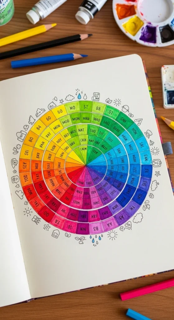 A mood tracker turns feelings into color. Assign each mood a shade and fill a small section daily. Over time, the page becomes a colorful pattern. It’s both decorative and meaningful. Even a simple grid works well. This layout makes emotional tracking feel creative instead of serious.