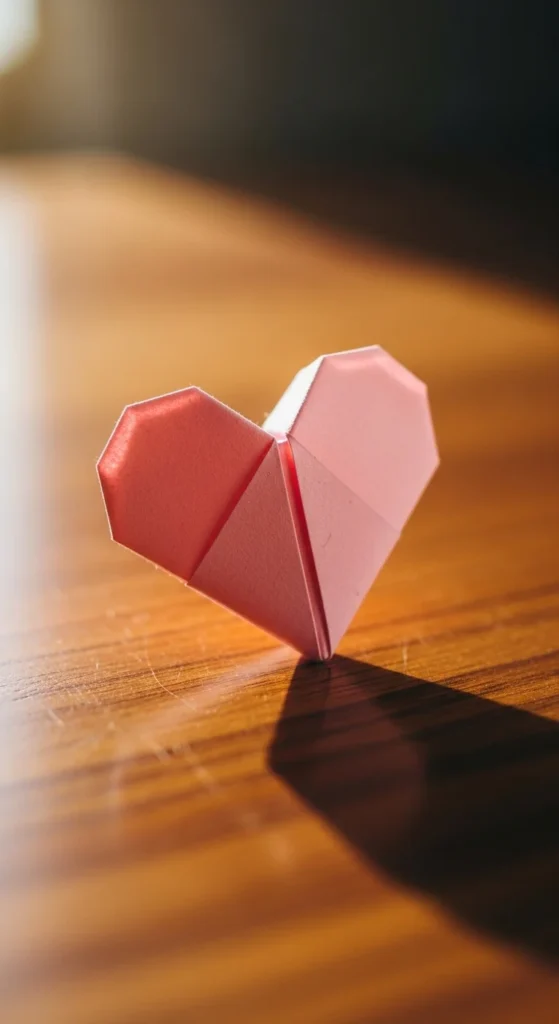A bow heart fold adds extra charm to a basic heart. Fold a simple heart shape first. Then make a tiny paper bow and tuck it into the top folds. Use contrasting colors for a cute look. Budget tip: Use leftover paper scraps for the bow. These hearts look adorable on gifts, cards, or notes. The added bow detail makes them feel extra special without much extra effort.