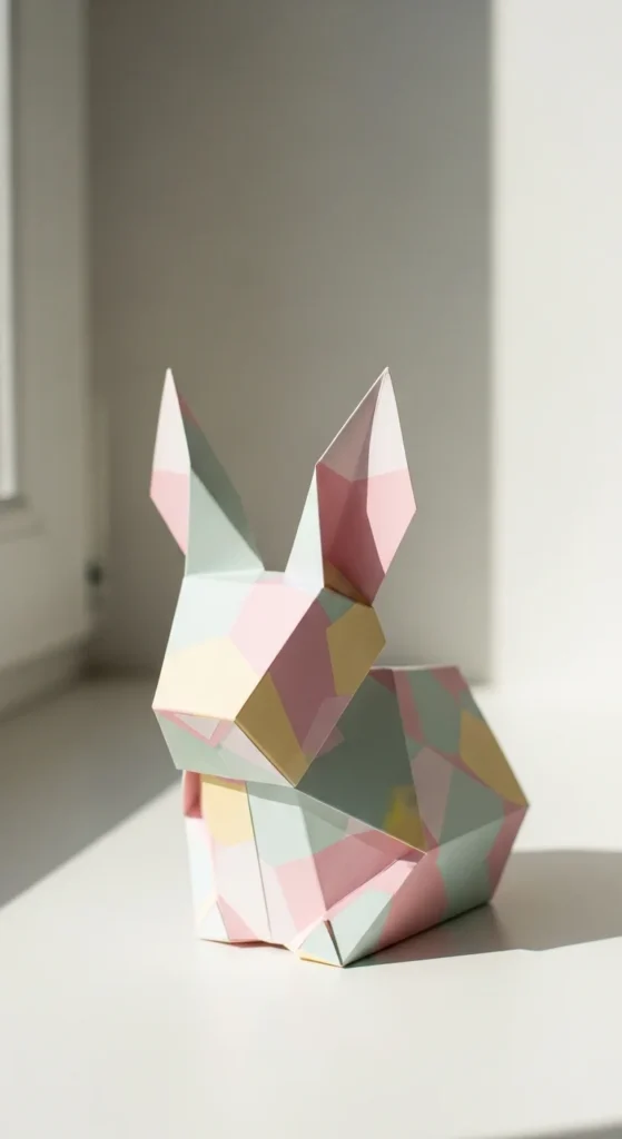 A bunny box combines storage and cuteness in one simple design. Fold a square into a shallow box shape first. Then form two pointed flaps at the top to create bunny ears. Press creases well so the ears stand upright. Draw a small face with whiskers and eyes for extra charm. Budget tip: Use pastel paper from old gift wrap for soft colors. These boxes are perfect for holding tiny candies or notes during spring celebrations. Because the design stays flat at the base, the box is stable on tables. You can make several and arrange them as party decorations or small gifts.