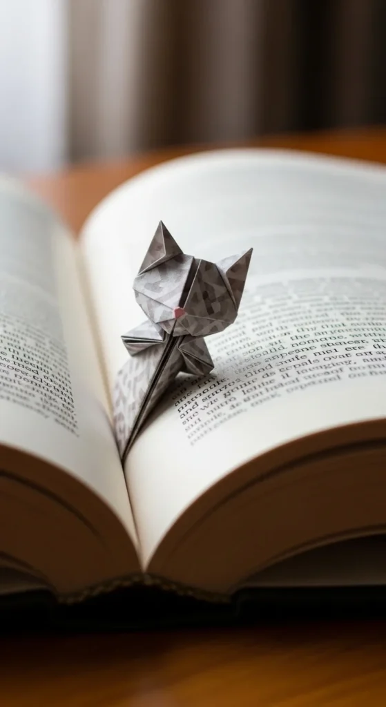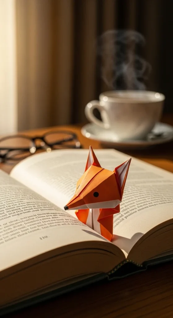 A fox bookmark mixes a fox face with a useful pocket fold. Start with a square and fold it into a corner bookmark base. Then add ear folds at the top to create the fox face shape. Draw small eyes and a nose. Slide the finished piece over a book page corner. Budget tip: Use orange magazine pages or colored paper scraps. These bookmarks are practical and cute, making reading time more fun. They also make thoughtful handmade gifts for book lovers.
