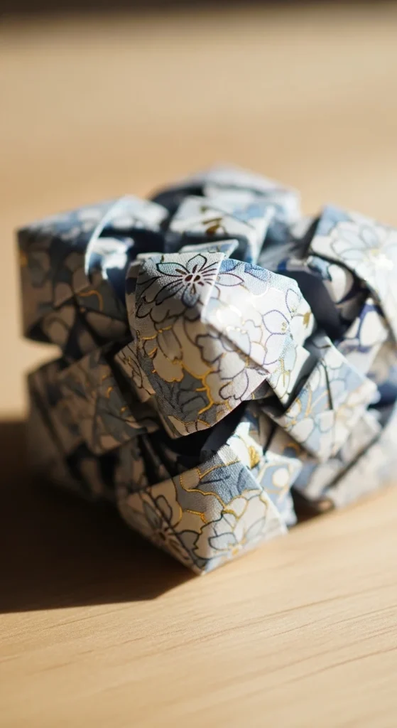 An infinity cube creates a simple fidget toy from connected folded pieces. Fold several small rectangles into modules and join them together. Flip and fold it repeatedly to see the shape change. Budget tip: Use scrap paper strips. It’s fun to make and keeps hands busy.