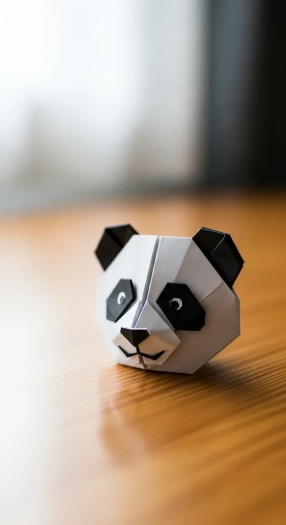 A panda face fold is quick, beginner-friendly, and always adorable. Start by folding a square into a triangle. Fold the top corners down slightly to form rounded ears. Flip the model and fold a small triangle at the bottom to create the chin shape. Use a black pen to draw round panda eyes and a tiny nose. Budget tip: Use white paper and color the ears and eye patches with a marker instead of buying black paper. These tiny panda faces look cute glued into notebooks or journals. You can also turn them into mini cards by writing a note on the back. The simple folds make it easy to create several in just a short time.
