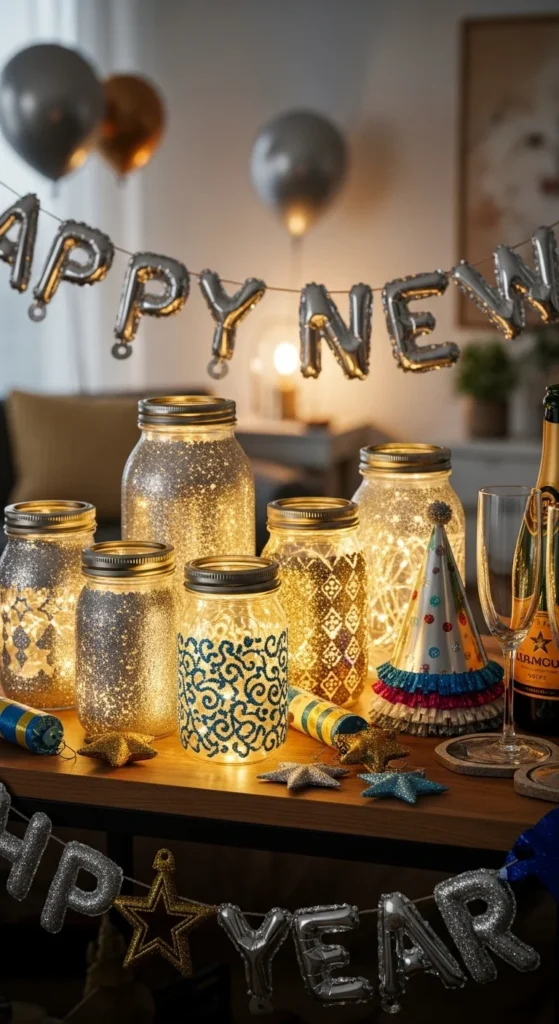 Transform old mason jars into glowing decorations. Coat the inside with glue and shake in glitter. Drop in LED candles or fairy lights. Use them as nightlights or scatter them around the room. These jars are great for balconies and outdoor parties too. Tie ribbons or metallic rope for a finished touch.