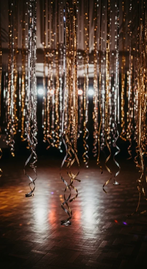 Streamers make any room party-ready. Cut foil sheets into long strips and hang them from the ceiling. You can layer different colors for movement. When fans or people move, they shimmer beautifully. A roll of metallic gift wrap works perfectly for this quick DIY.