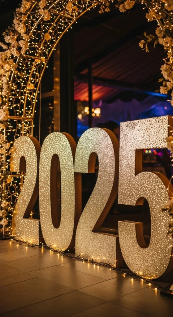 Cut large numbers from cardboard and coat them with glue and glitter. Mount them on foam or place them against the wall. Wrap fairy lights around for glow. This DIY becomes a perfect photo backdrop.
